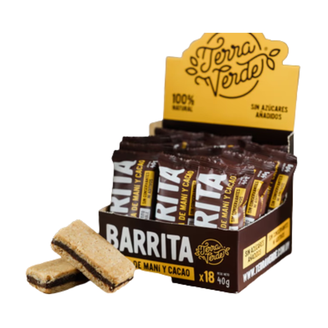 Las Barritas Terra Verde de Pasta de Maní y Cacao 40g son el equilibrio perfecto entre sabor y nutrición 🌱.