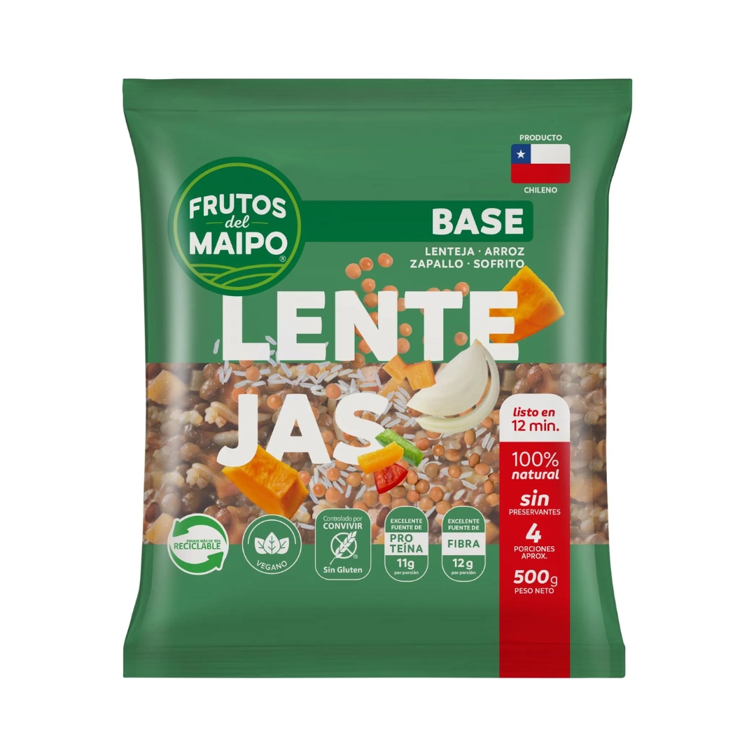 Base Porotos Granados Frutos del Maipo 500g – Poroto granado, choclo, zapallo y sofrito. 🌱 100% natural, sin conservantes, vegana, sin gluten. 7,3g de proteína y 10,5g de fibra por porción. Rinde 5 porciones, lista en 12 min.
